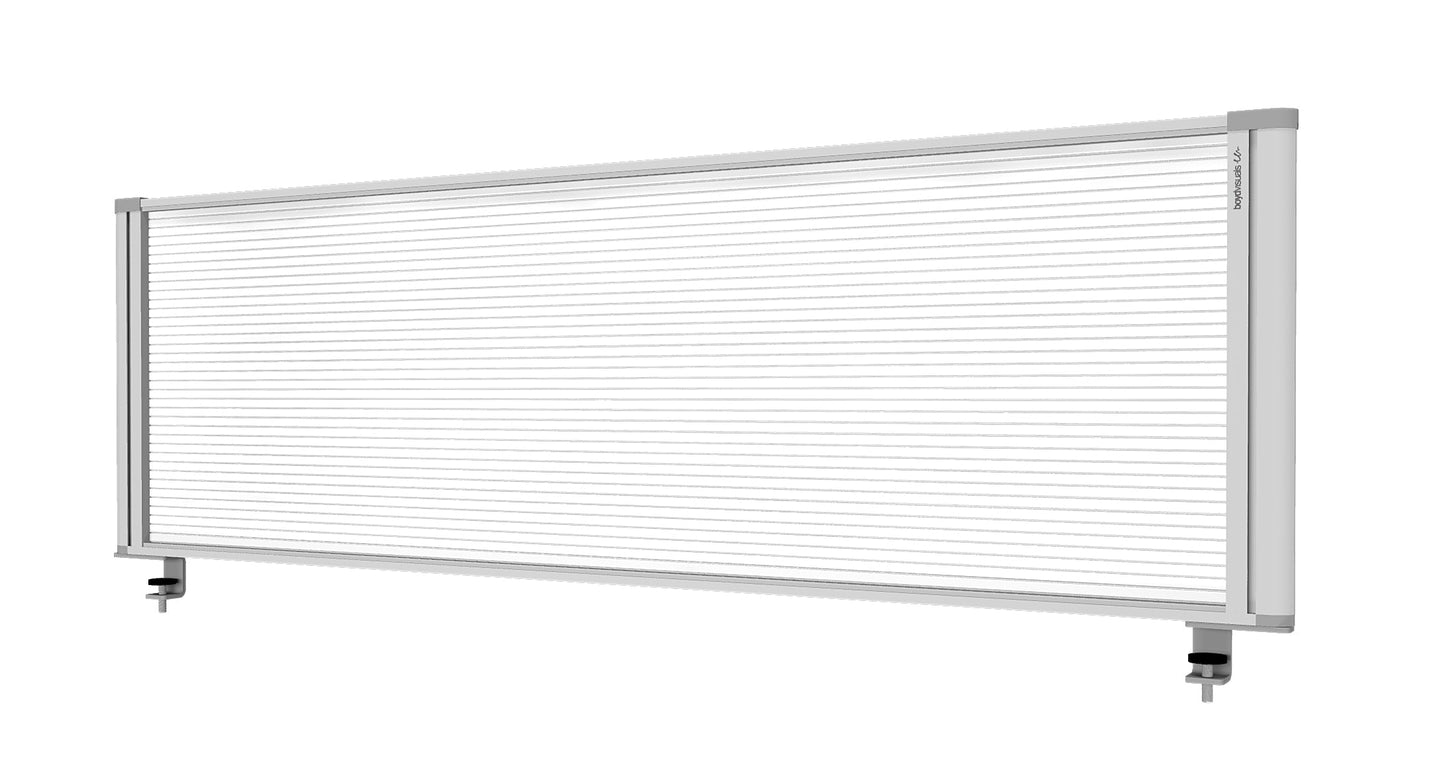 - Our Desk Mount Partitions have a new design, featuring panels with Acoustic properties